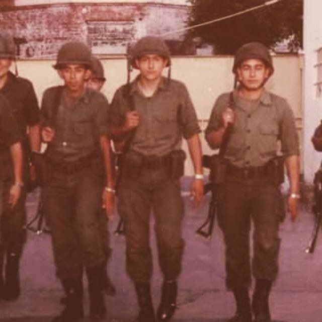 Rubén (al medio) y otros dos soldados de Malvinas.