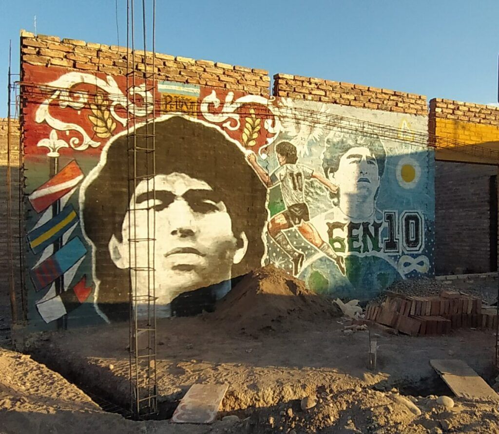 Otra tentación eran las empanadas. No menos de tres casas por cuadra ofrecían su arte culinario. “Vamos que mañana no se trabaja y juega Argentina”, se escuchaba al pasar, con una chacarera de fondo y un mural de Diego para decorar.