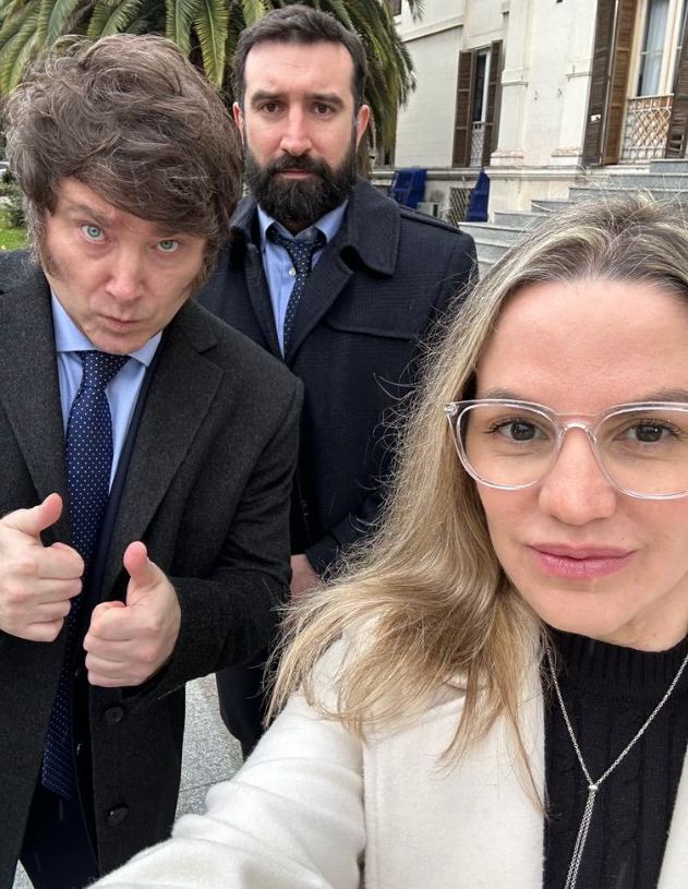 Carolina Piparo, junto a Javier Milei y Francisco Onetto.