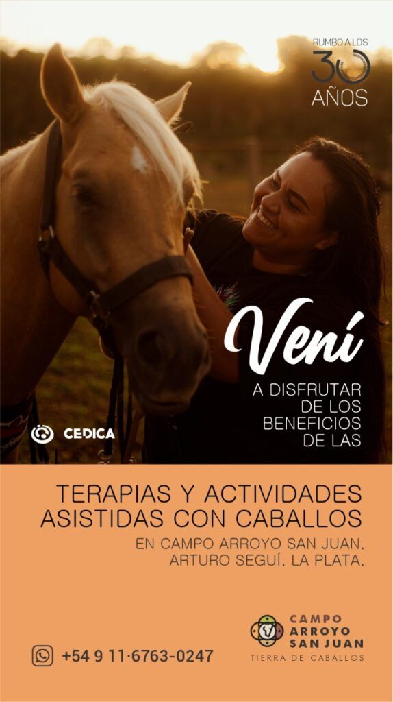 El Centro de Equitación para personas con Discapacidad y Carencias (Cedica) cumple 30 años y, en ese marco, este jueves habrá una actividad abierta al público en el Campo San Juan de Arturo Seguí, La Plata, para que la comunidad conozca los dos ejes de trabajo de la entidad: las Terapias y Actividades Asistidas con Caballos (Tacas) y el Deporte Ecuestre Adaptado.