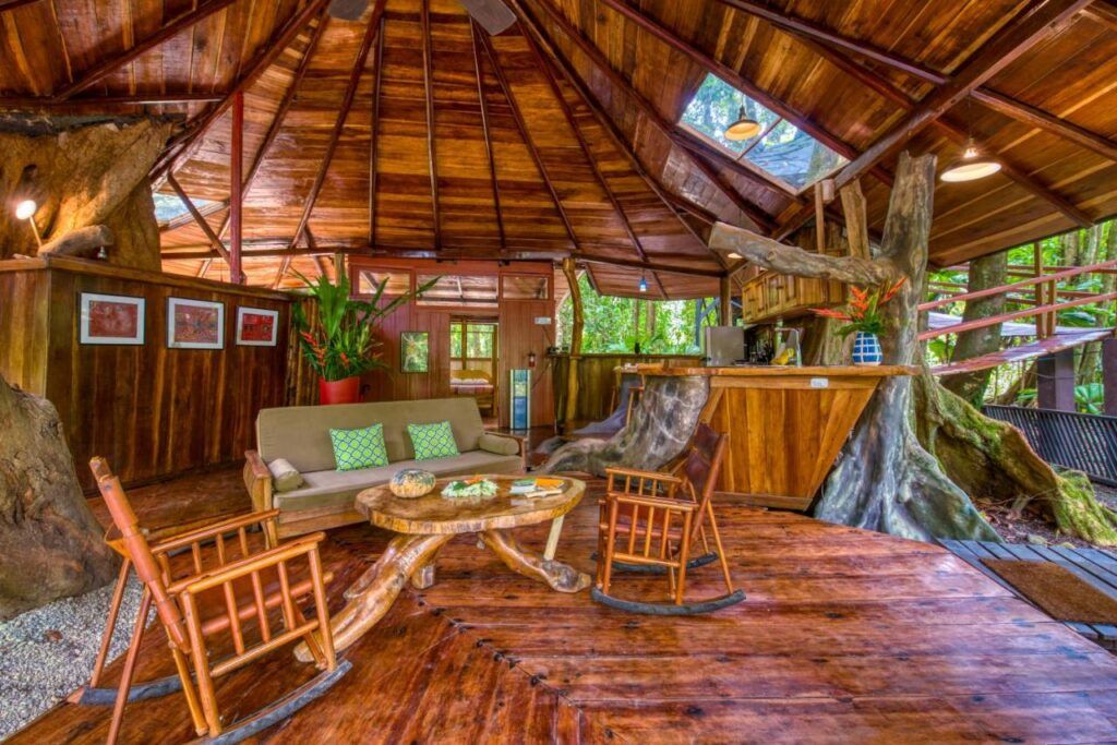 La propiedad es una excelente opción de alojamiento para familias que visitan la ciudad costera de Puerto Viejo, en el sureste de Costa Rica. Hay varias alternativas de alojamiento, que incluyen una casa de playa para hasta cinco personas a menos de 100 metros del mar, o una casa en el árbol con cocina y dos habitaciones, hasta un bungalow de 225m², que puede alojar a siete personas, con bañera de hidromasaje. Pero lo que más llama la atención es la arquitectura y decoración del lugar, con formas orgánicas, materiales ecológicos y colores vibrantes, que parecen haber salido directamente de un cuento de hadas. (DIB)