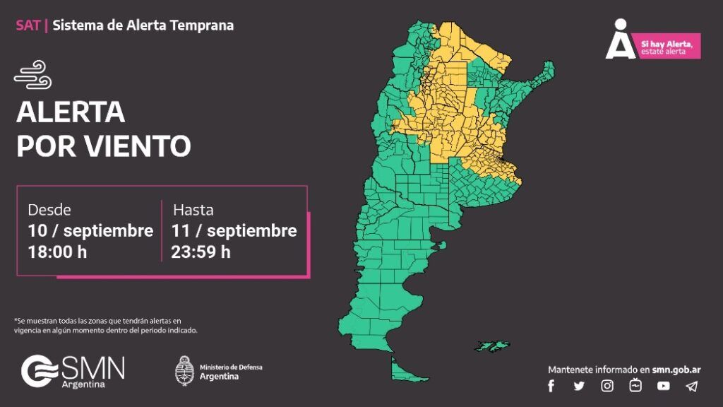 El Servicio Meteorológico Nacional (SMN) actualizó sus alertas amarillas por viento y tormentas para la provincia de Buenos Aires. Para esta noche y la madrugada del miércoles, hay alerta por tormenta vigente para la mitad del territorio bonaerense. Además, para gran parte de ese mismo territorio rige alerta amarilla por viento.