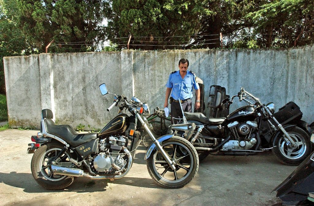 La Harley de Pappo (atrás) y la Kawasaki de su hijo luego del accidente. (Archivo Telam)